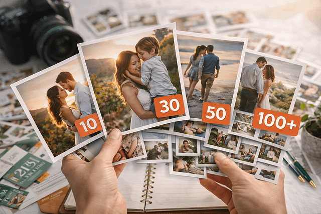 En sesiones familiares, de embarazo o retratos, la cantidad de fotos entregadas suele depender más del tipo de servicio que ofrezcas y del precio de la sesión.